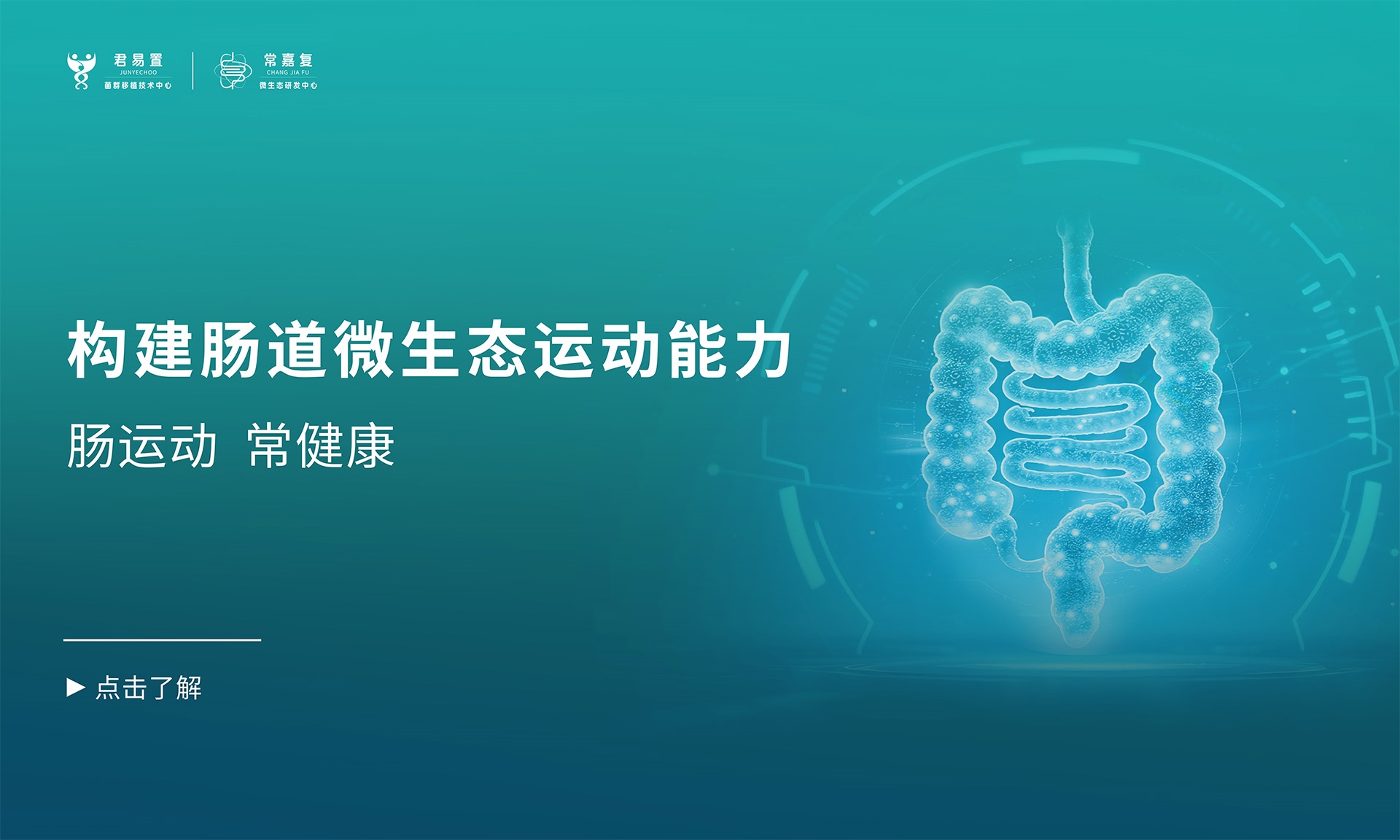 君易置生物科技是一家集臨床和基礎研究、S·FMT?運動菌群移植技術服務及微生態(tài)產品和方案研發(fā)為一體,專注于人體腸道微生態(tài)能力建設和個性化康復的高新技術企業 。公司秉承“腸運動,常健康”的核心理念,以“運動菌群 舒暢·輕盈”為研發(fā)邏輯,嚴選具有“運動菌群特征”的優(yōu)秀供體,研發(fā)調配促進菌群定植的定植伴侶,致力于通過科學調配菌群定植配方,提升患者的腸道微生態(tài)運動能力,實現疾病預防與治療。